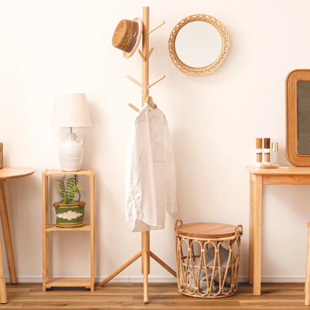 天然木のぬくもりを感じる北欧風デザインのポールハンガー
