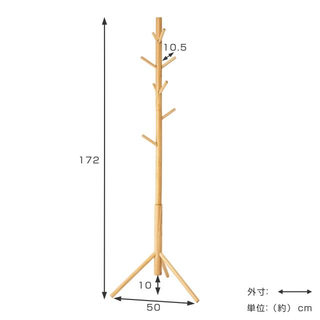 ポールハンガー 天然木 北欧風 幅50cm ( コートハンガー 木製 ハンガーラック 高さ172cm 洋服掛け コート掛け ポールスタンド 収納 かける カバン 帽子 ハンガーポール 玄関 リビング ナチュラル キッズハンガー 子供 子ども )