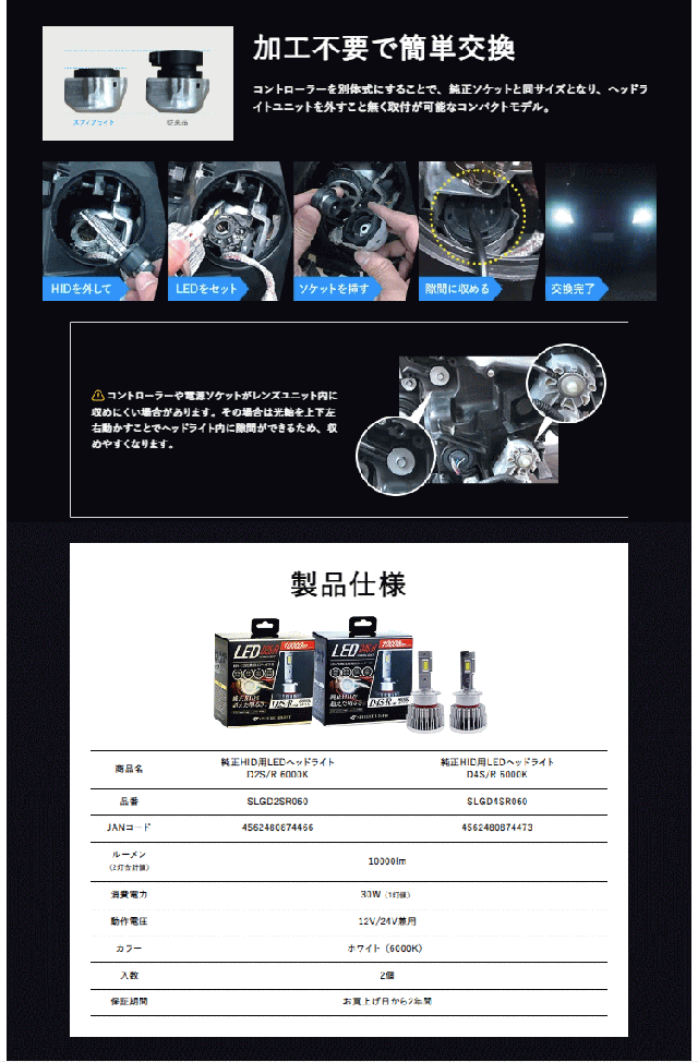スフィアライト SLGD2SR060 純正HID用LEDヘッドライト D2S/R 6000K 2年保証