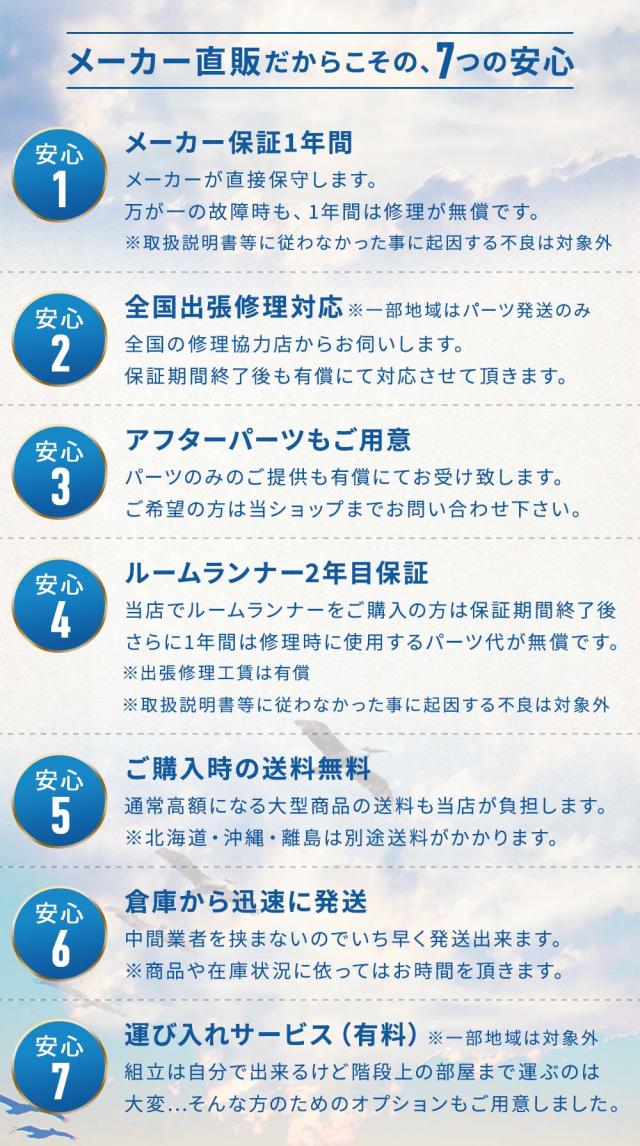 ・商品の配達時に対応することを前提としたサービスのため、「お届け後のマシンの組立」や「他店舗でご購入されたマシンの組立」など組立や運び込みだけのご依頼はできません。
