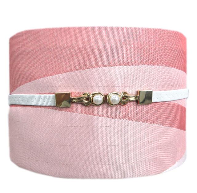 帯飾り 帯締め ワンタッチ パール付き 伸縮ゴム白 浴衣 ゆかた 着物 きもの 小紋 洗える着物 帯かざり 帯〆 白色 のびる