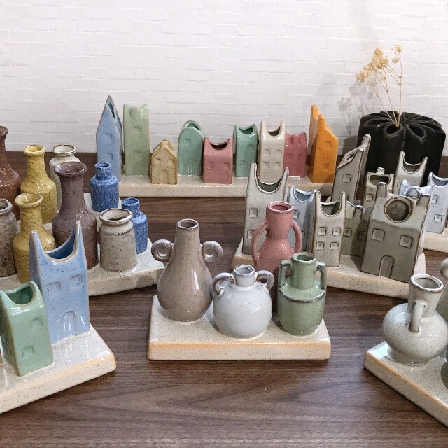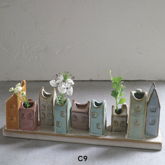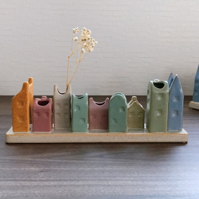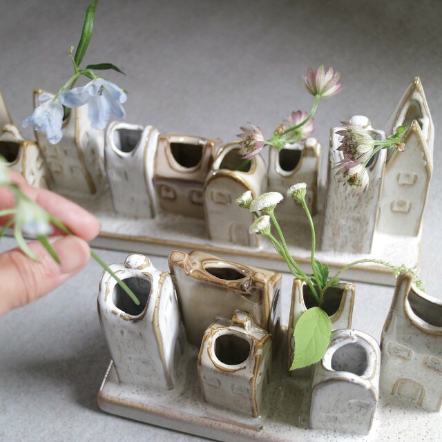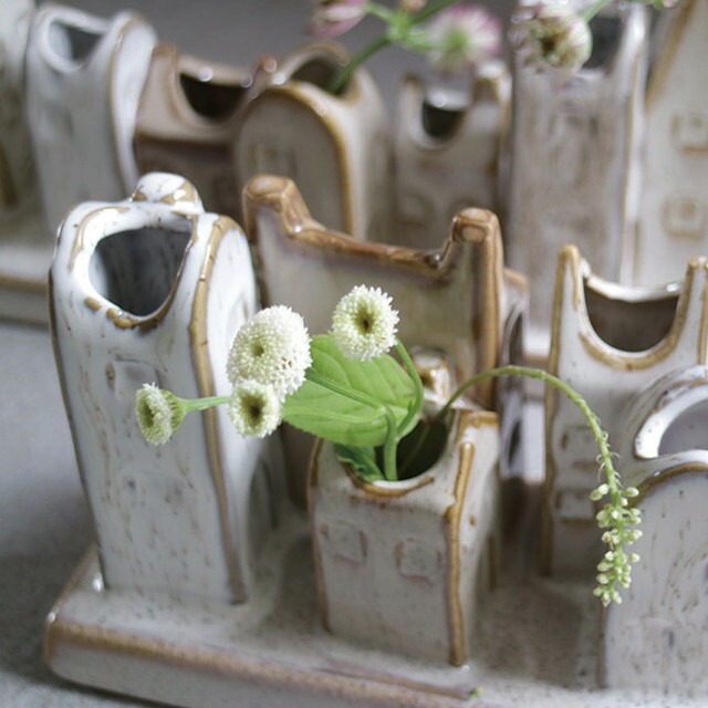 街並みをイメージするような家型ベース 花を生けても、オブジェとして楽しんでも◎