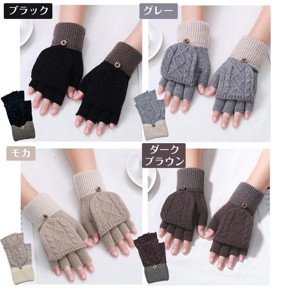 手袋 グローブ レディース 2WAY ミトン 指なし 指だし 指出し 指無し 指切り 指先 ケーブル編み 可愛い おしゃれ スマホ 対応 指紋認証 防寒 暖かい かぶせ 手首 プレゼント 冬 ブラック グレー ブラウン モカ 100289