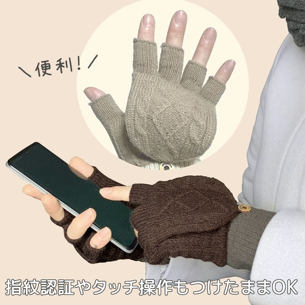可愛いケーブル編みのシンプルなデザインで、どんなコーディネートにも合わせやすい2way手袋です。