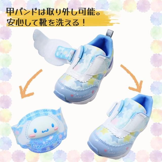 | 商品の特徴 | ■SA C040LE サンリオのLEDキッズシューズです。キャラクターがショップの店員さんになったキュートでファンシーなデザインです。甲バンドの顔の立体パーツが振動によって光ります。発光回数の目安は約30万回、およそ2か月光ります。ワンタッチで脱ぎ履きできる一本バンドのジョグタイプです。通園をはじめ、外遊びや運動、お出かけなど、マルチに履いていただけます。重さは16.0cmで片足約130gです。中敷きには「Ag+抗菌防臭」を搭載しています。【Ag+抗菌防臭】銀イオンの抗菌作用でにおいのもととなる菌の増殖を抑制し、防臭効果を発揮します。天然由来成分で安全です。ピンクはハローキティ、サックスはシナモロール、パープルはクロミ、ベージュはポムポムプリンです。 ■ SA C034 サンリオのLEDキッズシューズです。ワンタッチで脱ぎ履きできる一本バンドのジョグタイプで、通園をはじめ、外遊びや運動、お出かけなど、マルチに履けます。中敷きには「Ag+抗菌防臭」を搭載。銀イオンの抗菌作用でにおいのもととなる菌の増殖を抑制し、防臭効果を発揮します。甲バンドのキャラクターのパーツが振動によって光り、発光回数の目安は約30万回、およそ2か月光ります。リボンやドットが可愛いロリータ系デザインになり、アッパーのキラキラメッシュや、中敷のキャラクタープリントなど可愛いがたくさん詰まった一足です。ピンクは、ハローキティ、ミントは、シナモロール、パープルは、クロミになります。重さは16.0cmで片足約140gです。 ![]() | |