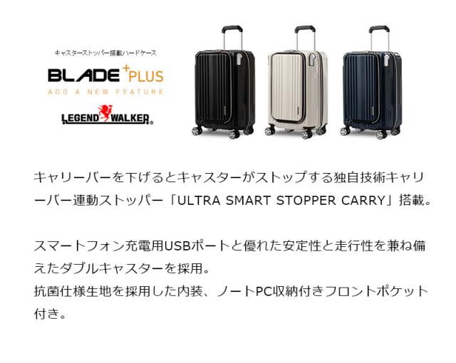 送料無料 機内持込み T&S/ティーアンドエス LEGEND WALKER/レジェンドウォーカー 6211-49 BLADE PLUS 37L スーツケース キャリーケース フロントオープン ストッパー キャリーバッグ キャリー ケース TSAロック ブランド Sサイズ ハード 出張用 一泊 軽量 軽い 旅行