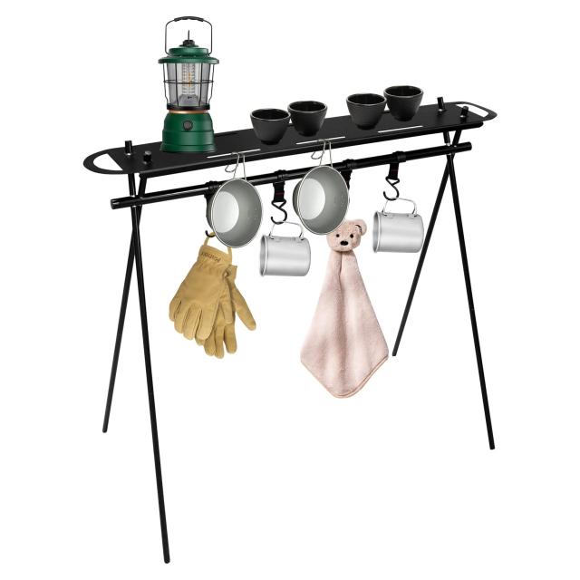 【幅広く利用可能】ランタンだけではなく、ピクニック用品、キッチン用具、食器、道具、カバン、水着、服などを掛けることができます。ソロキャンプからファミリーキャンプまで幅広いアウトドアシーンで活躍してくれます。室内干し用のラックとして、室内でも使用可能。か