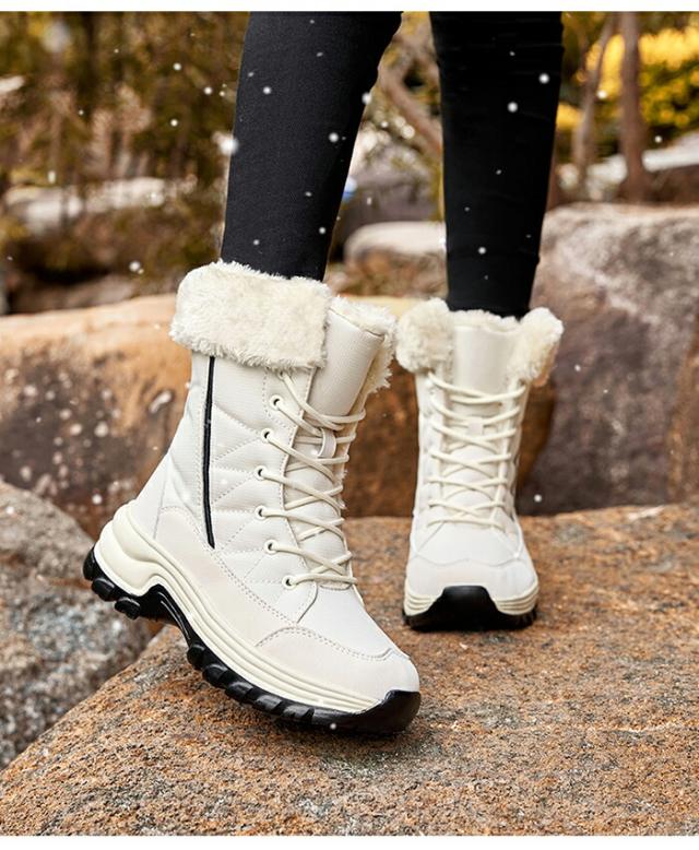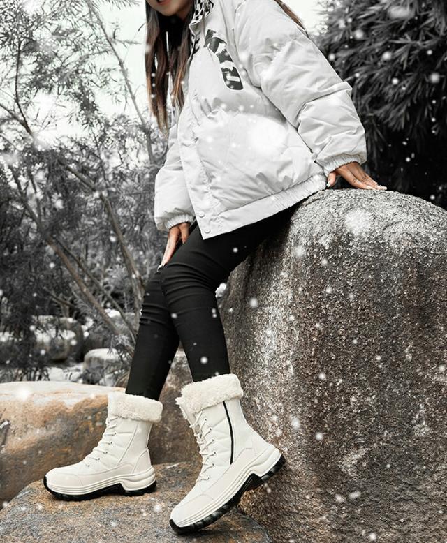 【防寒性と保温性】スノーブーツの裏地は、足首を包み込み、人の関節の冷えを防ぎ、熱性能に優れた短いぬいぐるみです。この360°の恒温保護により、寒い冬でも暖かく保ちます。