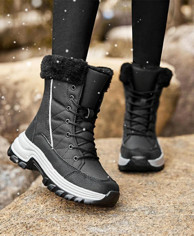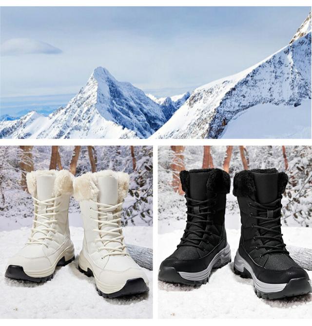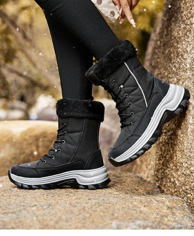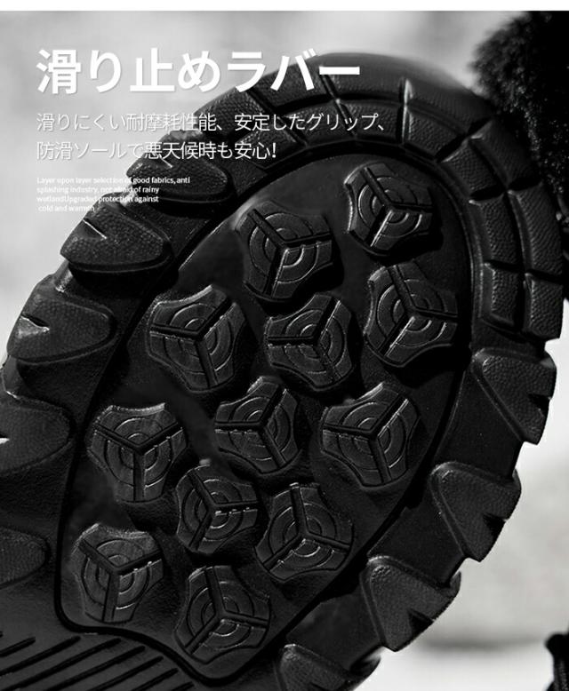 【防水仕上げ】スノーブーツは防水アッパー素材を使用し、水の浸入を防ぎ、湿った雪に強いです。完全防水ではありませんので、水に浸かると靴が濡れる恐れがありますのでご注意ください。