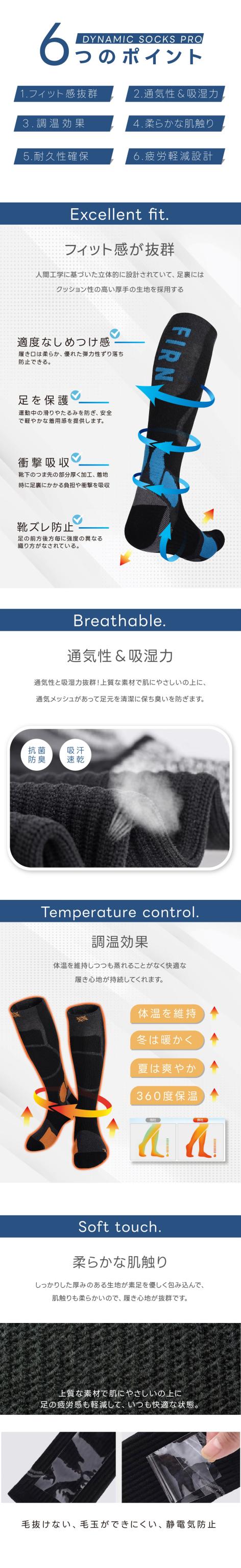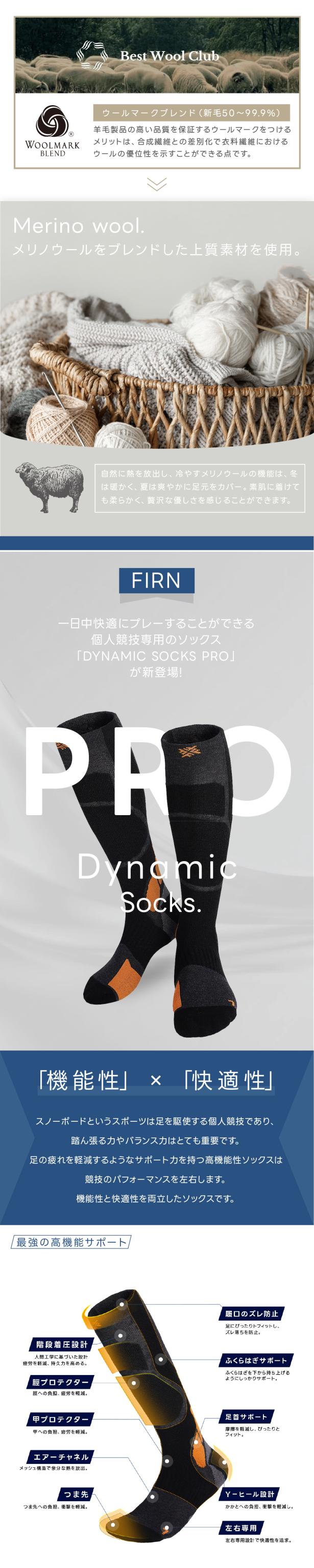 スキー スノーボード ダイナミック ソックス メリノウール ハイソックス 段階着圧 吸湿速乾 抗菌防臭 通気性 暖かい 高機能 スポーツソックス 登山 ハイキング ジョギング バイク メンズ レディース FIRN フィルン