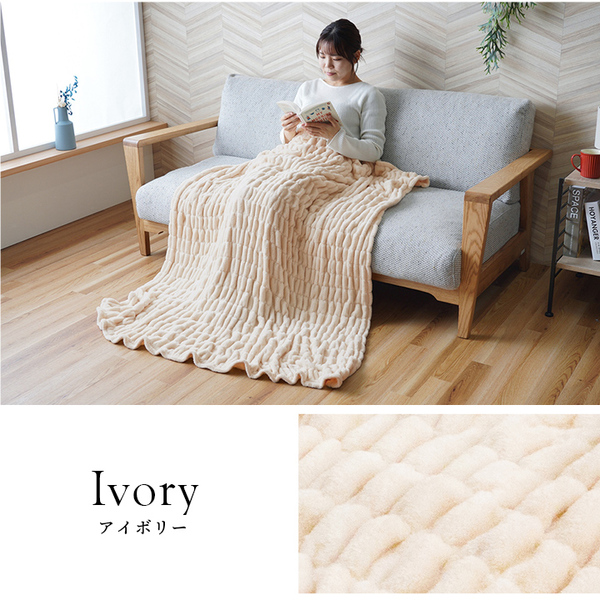 ブランケット 約100×140cm アイボリー 洗える ウォッシャブル フランネル 肌触りなめらか ボリューム 肩掛け ハーフケット 寝具 リビング 乳白色