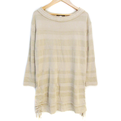 【中古】ミッシェルクラン チュニック ニット カットソー 長袖 ボートネック ボーダー柄 38 ベージュ レディース