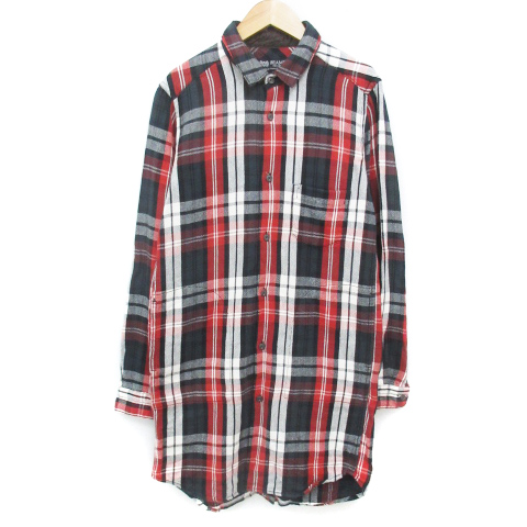 【中古】ビームスハート シャツワンピース ひざ丈 長袖 チェック柄 マルチカラー スリット S 赤 白 レディース