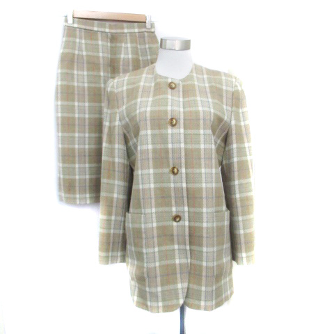 【中古】メモリー セットアップ 上下 ノーカラージャケット ミドル丈 タイトスカート ミモレ丈 9 カーキ レディース