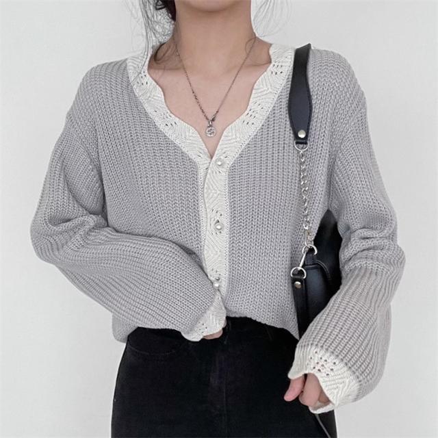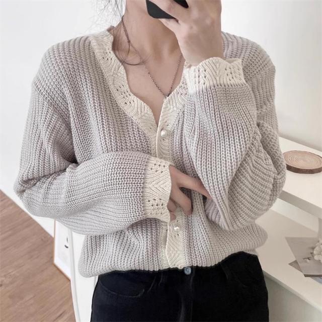 カーディガン レディース 秋冬 厚手 羽織り ニット セーター 長袖 Vネック ボリューム袖 バルキーニット コーデを華やかな印象に 大人お洒落な雰囲気に