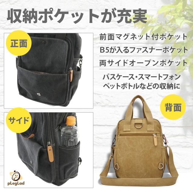 3way ショルダーバッグ リュック レディース メンズ A4 キャンバス 手提げ 縦型 背面ポケット リュックサック PC ラップトップ収納 ノート バックパック 帆布 便利 機能的 バッグ 鞄 トート ショルダー 手さげ トートバッグ ミニリュック 送料無料 おしゃれ かわいい 人気