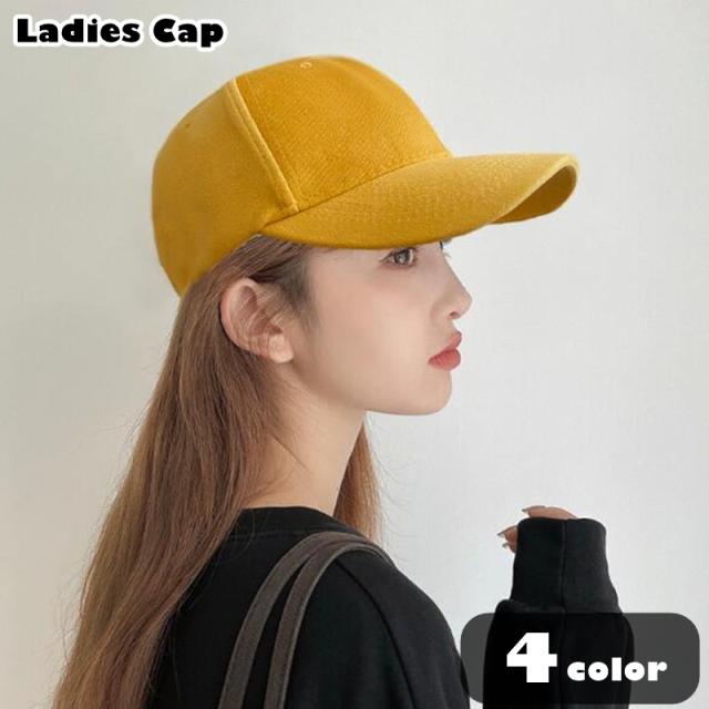 ベースボールキャップ 野球帽 レディース 女性 帽子 ぼうし ベロア調 無地 ブラック ピンク イエロー シンプル かわいい キ