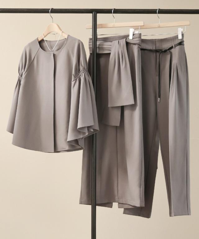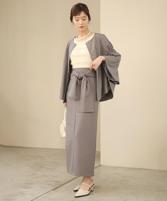 ジャケットとのセットアップできちんとした場になじむ上品フェミニンコーデが完成します。ブラウスと合わせてセミオケ風な着こなしも素敵です。