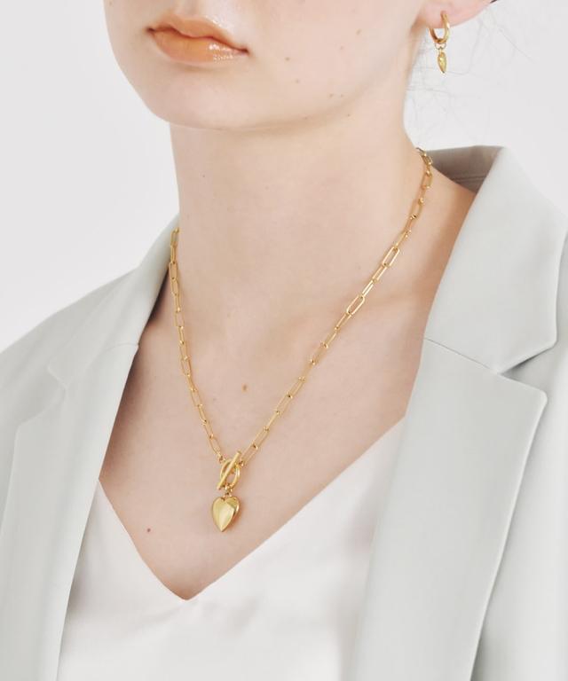 ●マンテル部分にぷっくりとしたハートのチャームがついたTバーネックレス。