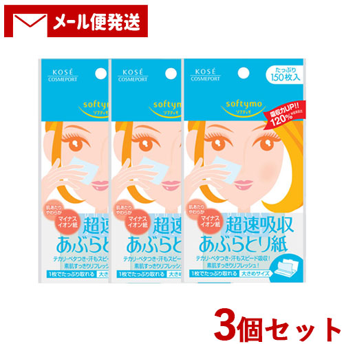 ソフティモ 超速吸収あぶらとり紙 150枚入×3個セット softymo コーセーコスメポート(KOSE COSMEPORT) 【メール便送料込】