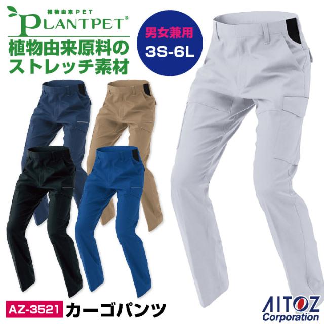 アイトス カーゴパンツ 秋冬 メンズ レディース ストレッチ エコ 帯電防止 シンプル 仕事服 作業着 運送業 工場 大きいサイズ az-3521-b