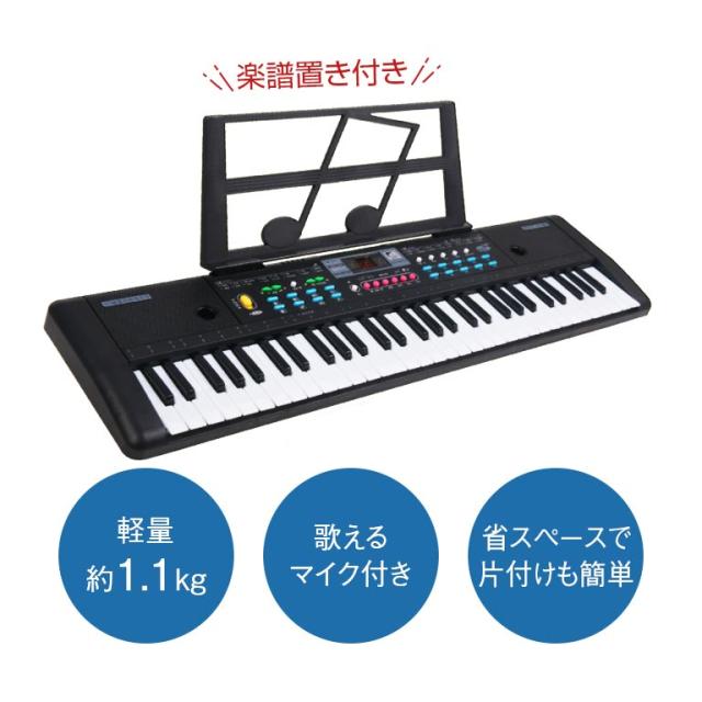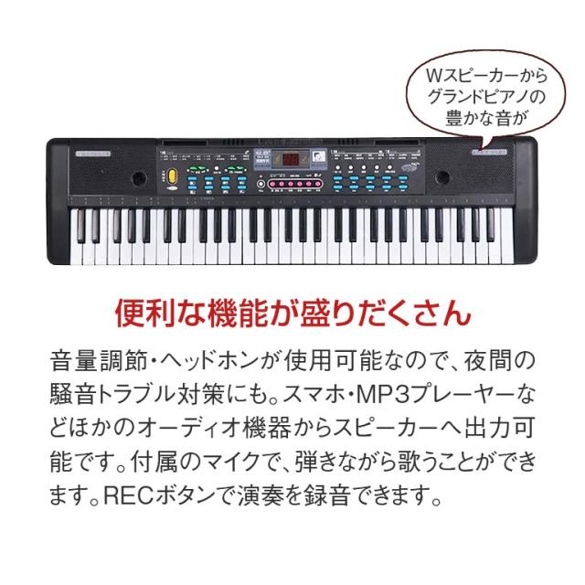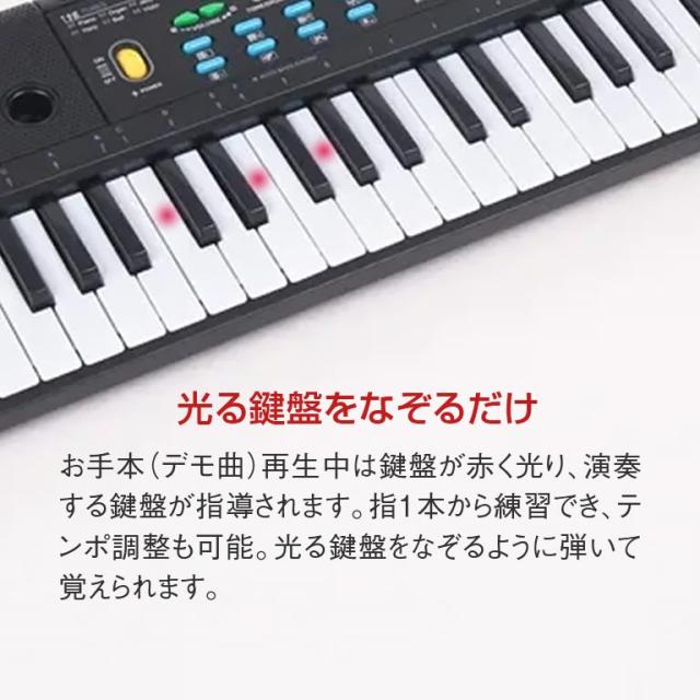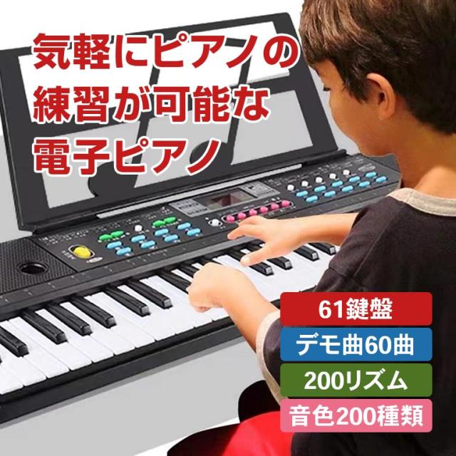 ガイド機能付 電子ピアノ 楽器 ピアノ キーボード 光る 鍵盤 ガイド 61鍵盤 デモ60曲 200リズム 音色200 テンポ調整 楽譜置き マイク付き 脳トレ シニア 年配 お子様 子ども キッズ 入門