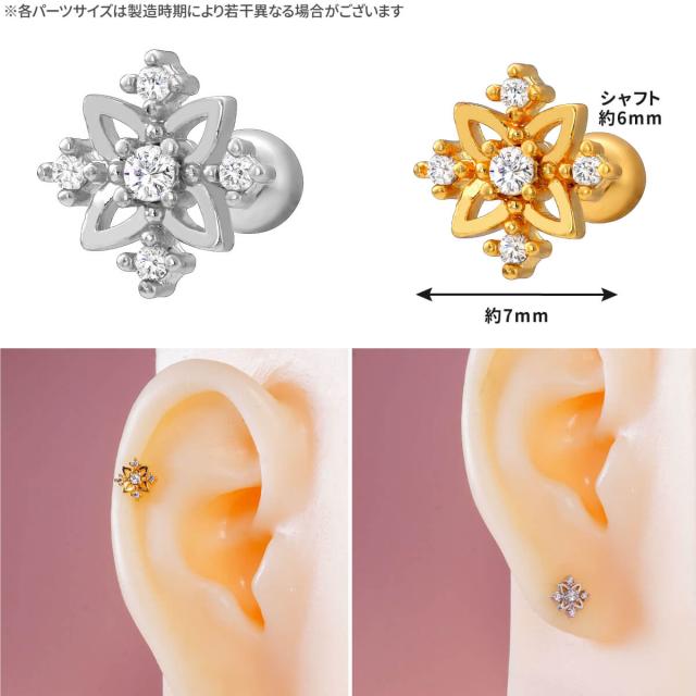 透かし フラワー クインテット ジュエル ストレートバーベル 14G 16G 18G 20G サージカルステンレス ヘリックス 軟骨ピアス ボディピアス