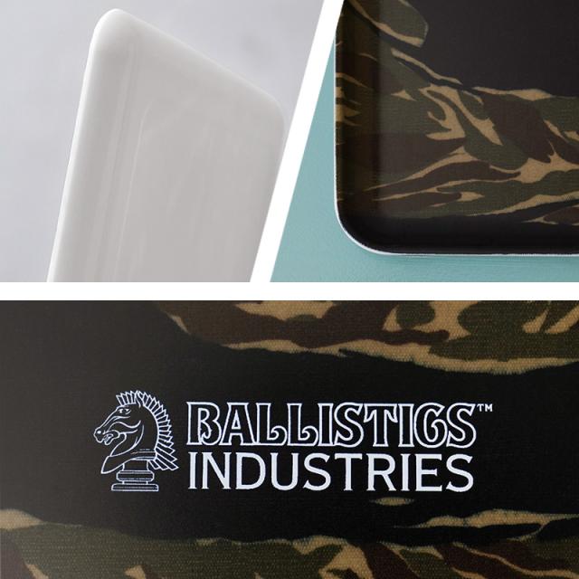 一見プリント柄の様に見えますが、米国タイガーストライププロダクツ社のタイガーカモの生地を樹脂で封じ込められており、一つ一つパターンが違うのが特徴で、愛着も沸くアイテムです。4サイズ展開で、S、Mサイズは小物を置くのに、L、XLはドリンクや食器を運ぶのにちょうど良いサイズです。滑り止め加工も施されているので、食器などを運ぶ際など滑りにくくなっているのも嬉しいポイントです。カラーは、デザートタイガーストライプとタイガーストライプ2色展開。中央には、おなじみのバリスティクスのロゴをプリント配置し、デザインのアクセントになっています。ご自宅でアクセサリーや小物を置いたり、食事の配膳やキャンプに持っていったりと幅広いシーンで活躍してくれます。普段の生活やアウトドアでの満足度をより良くしてくれるオススメアイテムです。