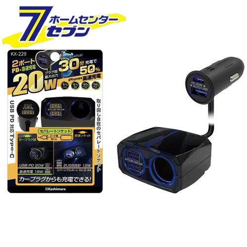 セパレートソケット2USB-PD20W USB PD(Power Delivery)対応 KX229 カシムラ [パワーデリバリー 車用品 バイク用品 アクセサリー スマホ タブレット 携帯電話用品 カーチャージャー]