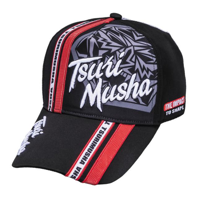 釣武者 TMレッドリザードキャップ ブラック/ラインレッド C019 (フィッシングキャップ 帽子 釣り)