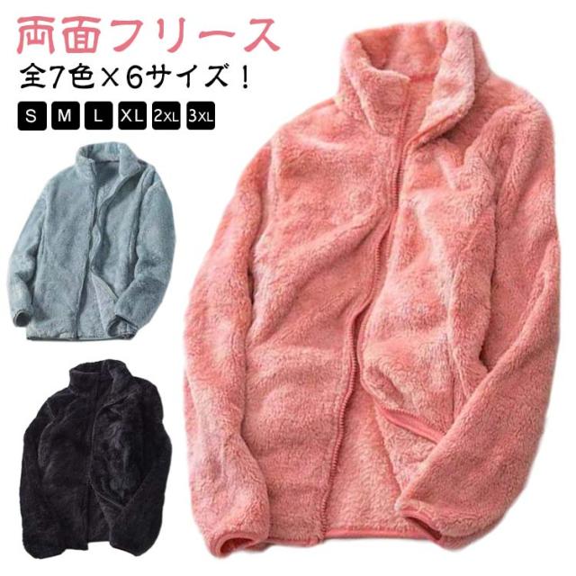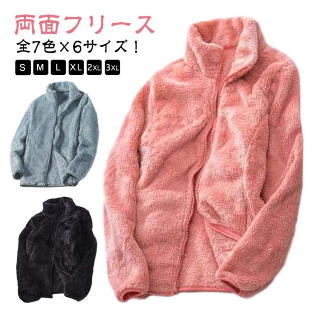 両面フリース ボアジャケット 秋冬 暖かい トップス ボアパーカー フリースパーカー レディース スタンドカラー 防寒 防風 パーカー ジャケット ジップアップ 立ち襟 フリース ボア フワフワ モコモコ アウトドア 秋冬 無地 送料無料
