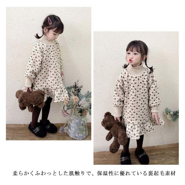 ワンピース 裏起毛 長袖 キッズ チュニックワンピース ミニワンピース フレアスカート 子供服 こども服 ハイネック フォーマル 暖かい ドレス あったかい 秋冬 ミニ丈 ショート丈 シンプル 無地 子供服 裏起毛ワンピース 春 80 90 100 110 120 送料無料