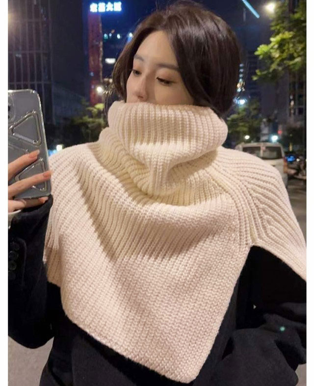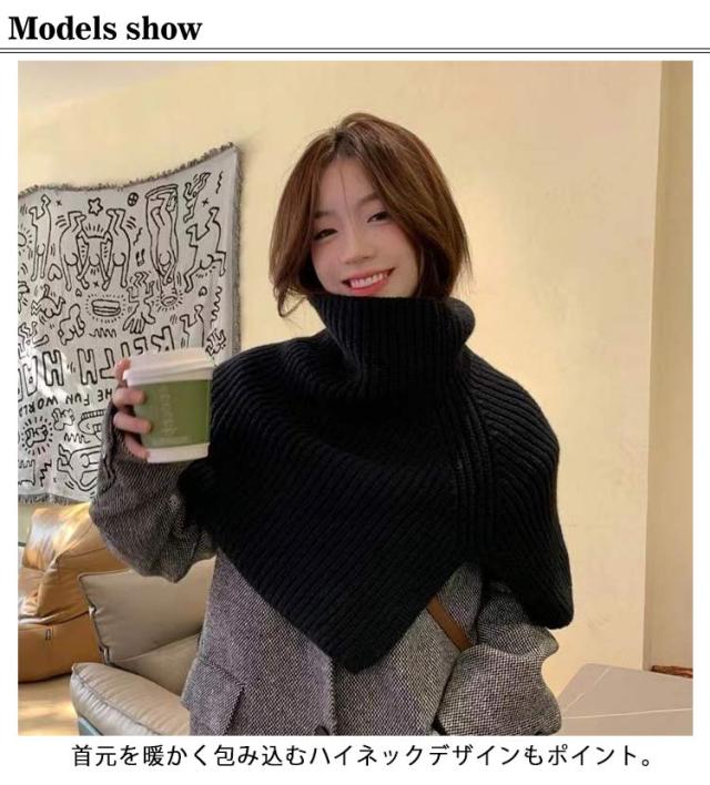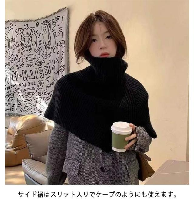 スヌード ニットスヌード レディース マフラー ニットストール ネックウォーマー ケープ トップス 巻物 タートルネック ハイネック ショート丈 ニット セーター レイヤード 重ね着 冬 秋冬 防寒対策 ゆったり ケープスヌード リブ編み シンプル 無地