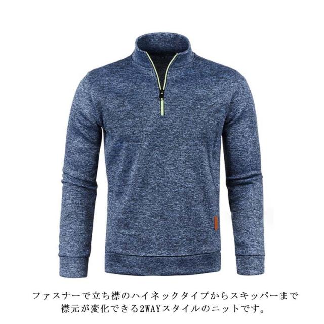 | 生地は素肌に触れても柔らかく、チクチクしないので着心地もいい感じの素材です、クラシックなスタイルを踏襲したタートルネック仕様。 シンプルで無地なデザインでありながら、タートルネック本来の特徴である首元を暖かく包み込み首周りの暖かさをキープ、がっちり保温してくれます。 伸縮性もあり、動きやすく、適度な厚みで、アウターを着てもごわつきを感じません。 ざっくりとした生地感で雰囲気を楽しむスタイリッシュな無地アイテムなので、スマートなネック部分が魅せる健康的な爽やかさ。 ファスナーで立ち襟のハイネックタイプからスキッパーまで襟元が変化できる2WAYスタイルのニットです。防寒性にすぐれ、ゴワゴワせず柔らかで、着心地抜群の一枚です。 | |