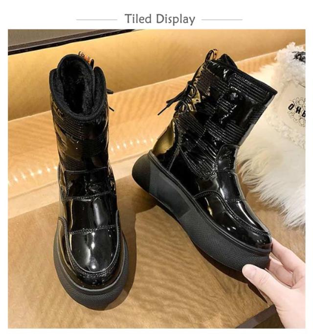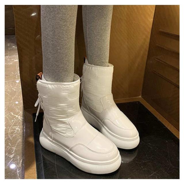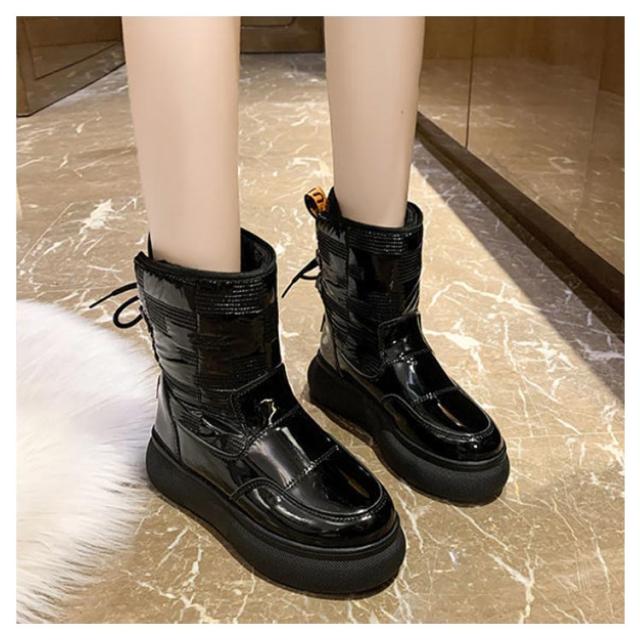 ショートブーツ ムートンブーツ レディース 厚底 スノーシューズ ブーツ 厚手 スノーブーツ 裏ボア 裏起毛 厚底ブーツ ウインターブーツ ミディアムブーツ 大きいサイズ 暖かい ボア ふわふわ 滑り止め 防水 防寒 防風 冬 滑りにくい 歩きやすい 靴 送料無料