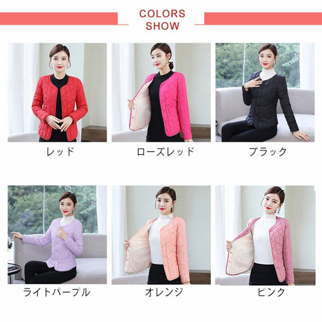 中綿ジャケット レディース 中綿コート ブルゾン ライトダウン ライトアウター ジャケット ショート インナーダウン ダウン風ジャケット 裹起毛 軽量 薄手 防寒 保温 あたっか 長袖 コートイン インナージャケット 春 秋 冬 アウター 上着