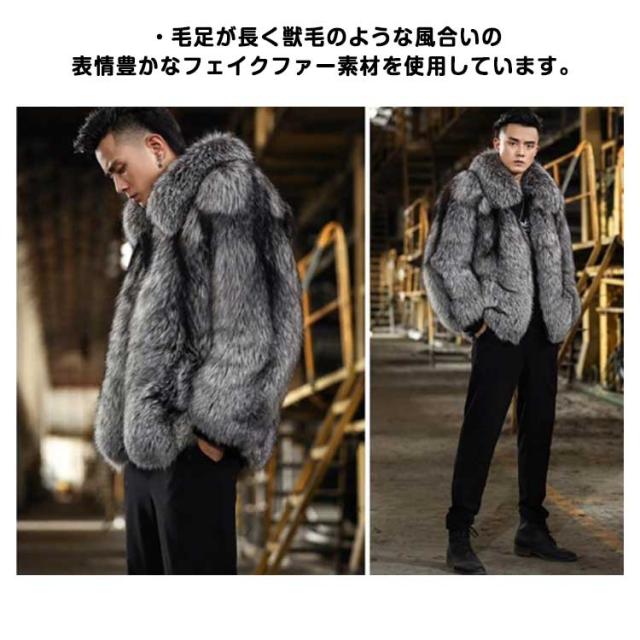ファーコート メンズ 毛皮コート ファージャケット 大人 アウター コート フェイクファー きれいめ 大きいサイズ 防寒 暖かい あったか オシャレ カジュアル 派手 秋 冬