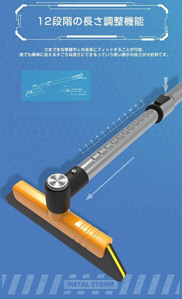 ■【組み立て簡単・伸縮可能】伸縮レバーはアルミニウム合金もので、折れにくい。また伸縮レバーのボタンを押すだけで長さを調節でき、フロントガラスや屋根の雪を簡単に掃除できます。