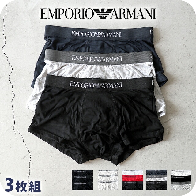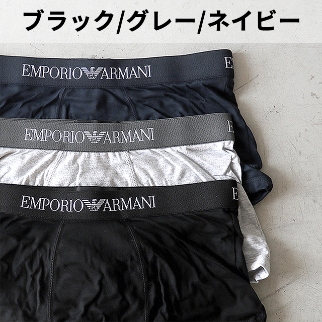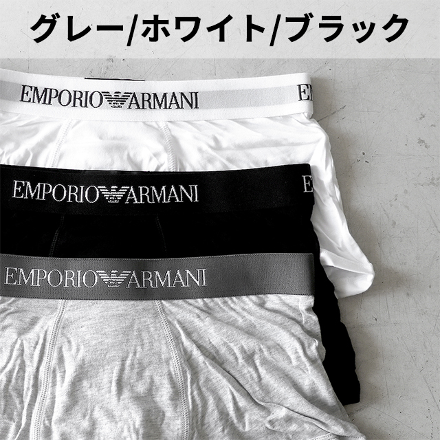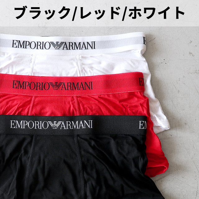 エンポリオアルマーニ ボクサーパンツ メンズ ブランド Classic Brief 3 Pack ローライズ 3枚セット コットン100% エンポリオアルマーニ Classic Brief 3 Pack ブラック ホワイト レッド グレー ネイビー 選べるモデル ◆エンポリオ・アルマーニは、モード界で大活躍したGIORGIO ARMANI(ジョルジオ・ア ルマーニ)の若者向けセカンドラインとして「装うことを楽しく遊ぼう」をコンセプトに発表されました。実際に手にとってみると、洗練されたシルエットは細やかに創り込まれていることがわかります。常に紳士服の機能性を応用し、女性らしい雰囲気、贅沢な素材と美しいシルエットに着心地の良さを追求。 3枚セット、コットンボクサーパンツ。前閉じタイプでフィット感、肌触りがソフト。ストレスを感じさせない心地良いはき心地です。ウエストベルトのブランドロゴがおしゃれのポイントとなるアイテムです。