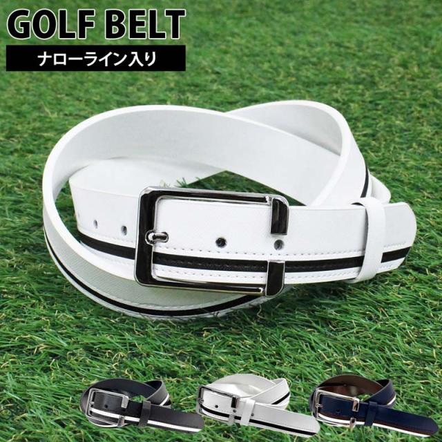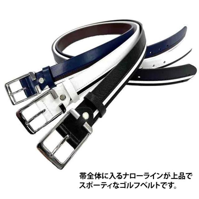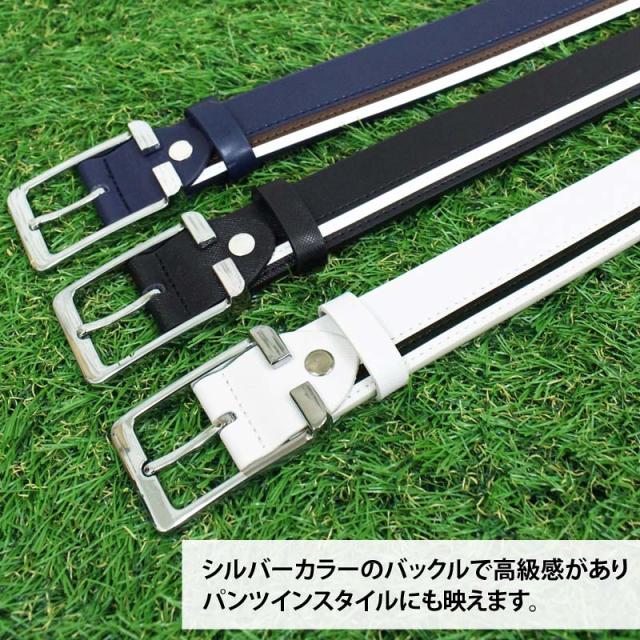 送料無料 ゴルフ ベルト メンズ ゴルフウェア ライン入り ゴルフベルト おしゃれ 黒 白 ホワイト ネイビー