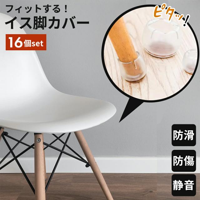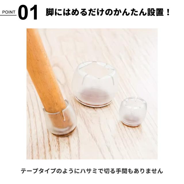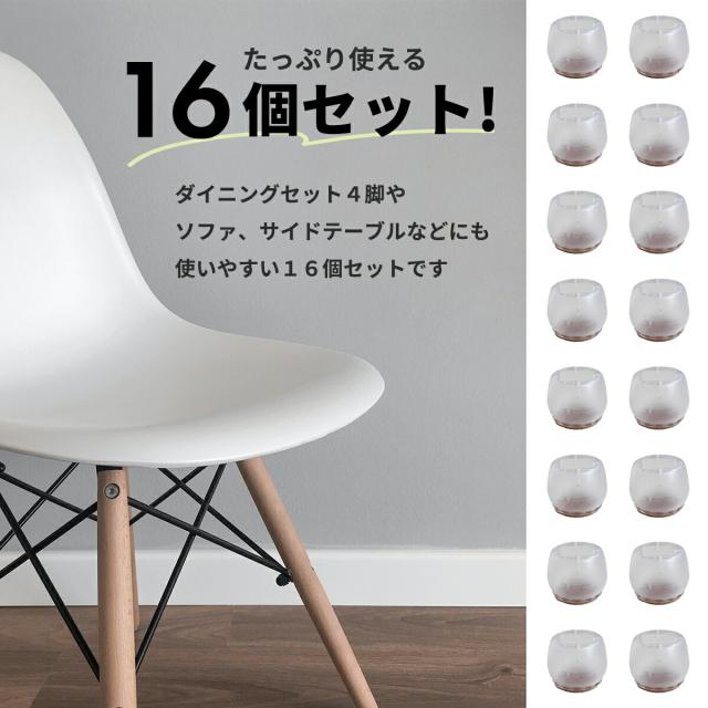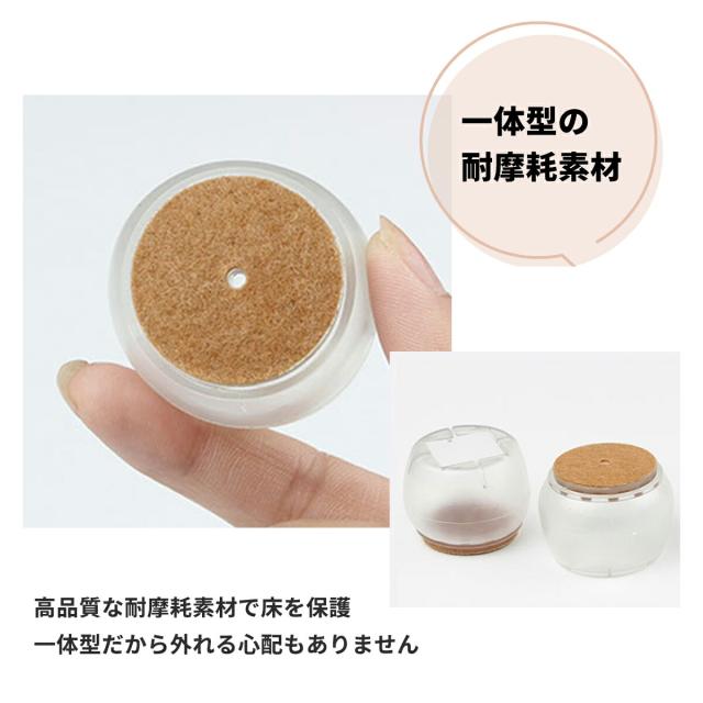 イス脚カバー いす脚カバー イス足カバー 椅子足カバー 椅子脚カバー 椅子あしカバー 椅子足キャップ カバー キャップ ずれにくい 脱げにくい 床保護 床傷防止 椅子キャップ 16個セット 4脚分 透明 丸型 イス脚 丸脚 騒音 対策 透明 フェルト