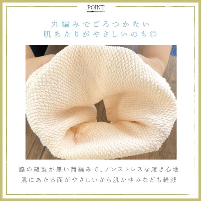 ・脇の縫製が無い筒編みで、ノンストレスな履き心地。