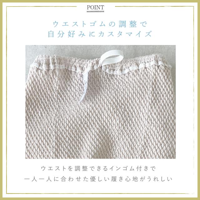 ・ウエストを調整できるインゴム付きで、一人一人に合わせた優しい履き心地。