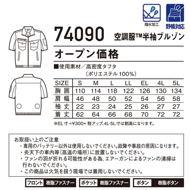 自重堂 制服百科 Jawin ジャウィン 空調服 半袖ジャケット 熱中症対策 ポリエステル100% 74090 宅配のみ