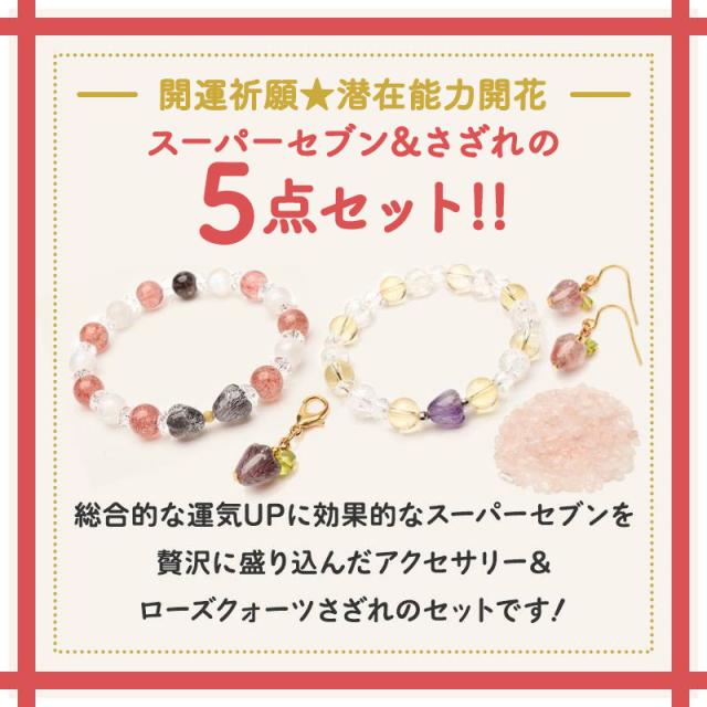 開運祈願◇潜在能力 開花 5点セット スーパーセブン ストロベリークォーツ ムーンストーン 水晶 シトリン ローズクォーツ ブレスレット ピアス チャーム プレゼント お守り アクセサリー _A1258