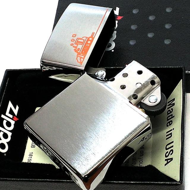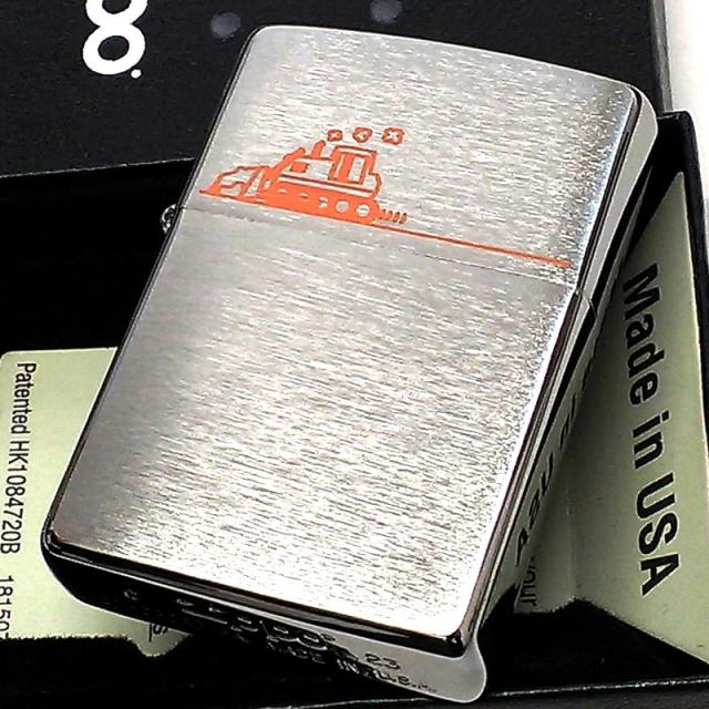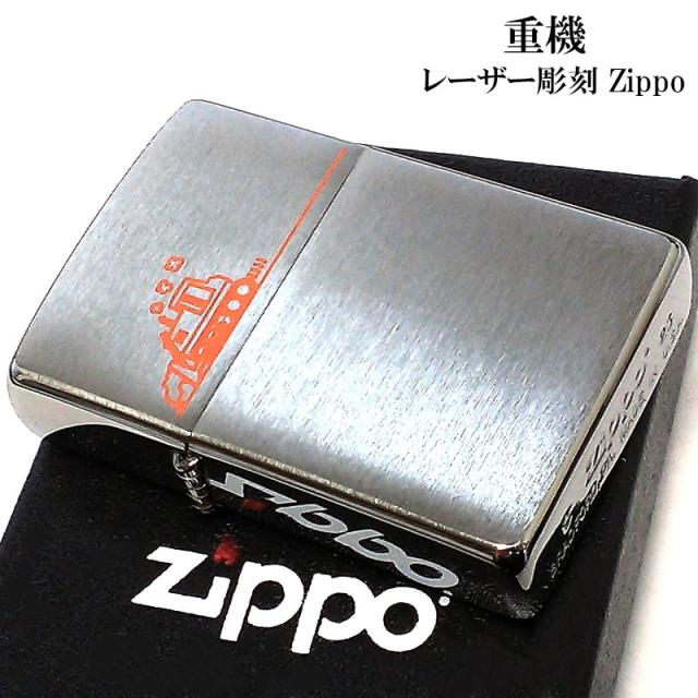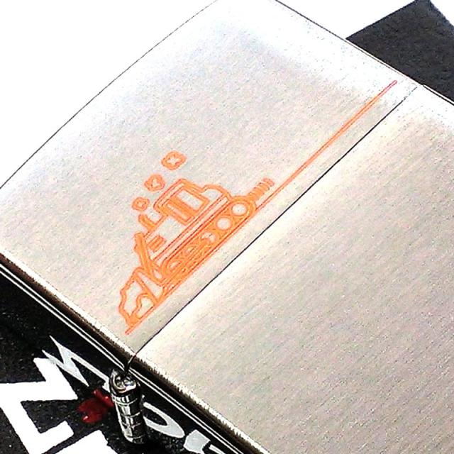 ZIPPO ライター 重機 シルバーサテン ジッポ オレンジ レーザー彫刻 かわいい シンプル 銀 おしゃれ 可愛い メンズ ギフト