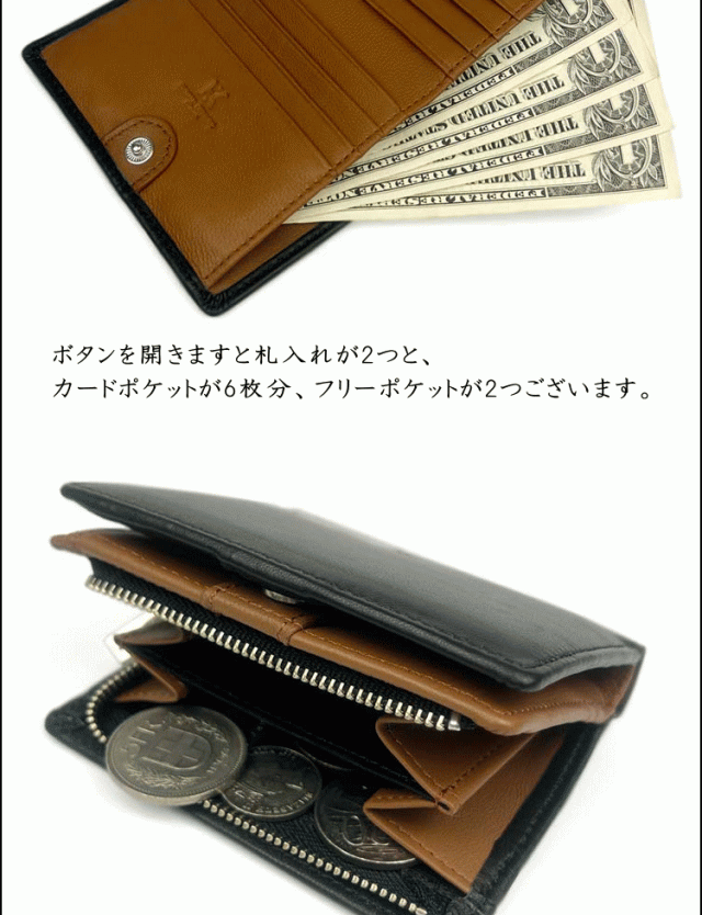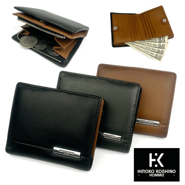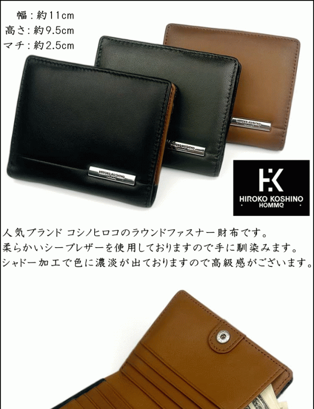 HIROKO KOSHINO 羊革 シープスキン シープレザー 箱付き 2つ折り 札入れ カード入れ多め メンズ 紳士 YKKファスナー 黒色 茶色 緑色