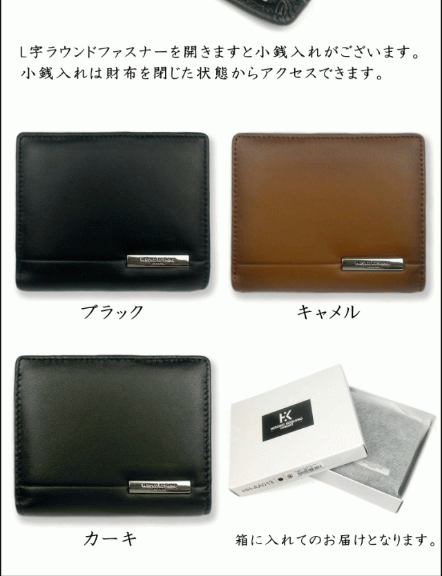 財布 コシノヒロコ 財布 本革 L字 ラウンドファスナー 財布 小銭入れ有り HH-AA013 ブラック色 キャメル色 カーキ色