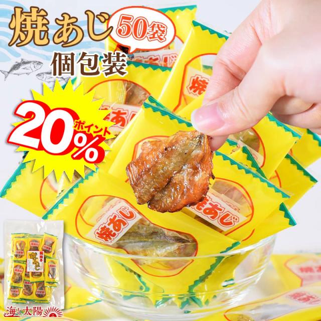 【P15%還元!】<焼あじ個包装 50袋入> 焼きあじ アジ 食べ物 ギフト プレゼント ピロー包装 シェア おつまみ お酒に おやつ グルメ 晩酌 珍味 海鮮 焼アジ 焼きアジ 鯵 海と太陽 クーポン消化 ポイント消化 大容量 業務用 バレンタインデー