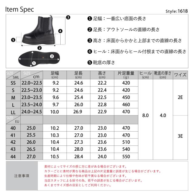 ショートブーツ サイドゴア 男女兼用 厚底 軽量 8cmヒール No.1618 22.0-27.0cm LOVEHUNTER ラブハンター